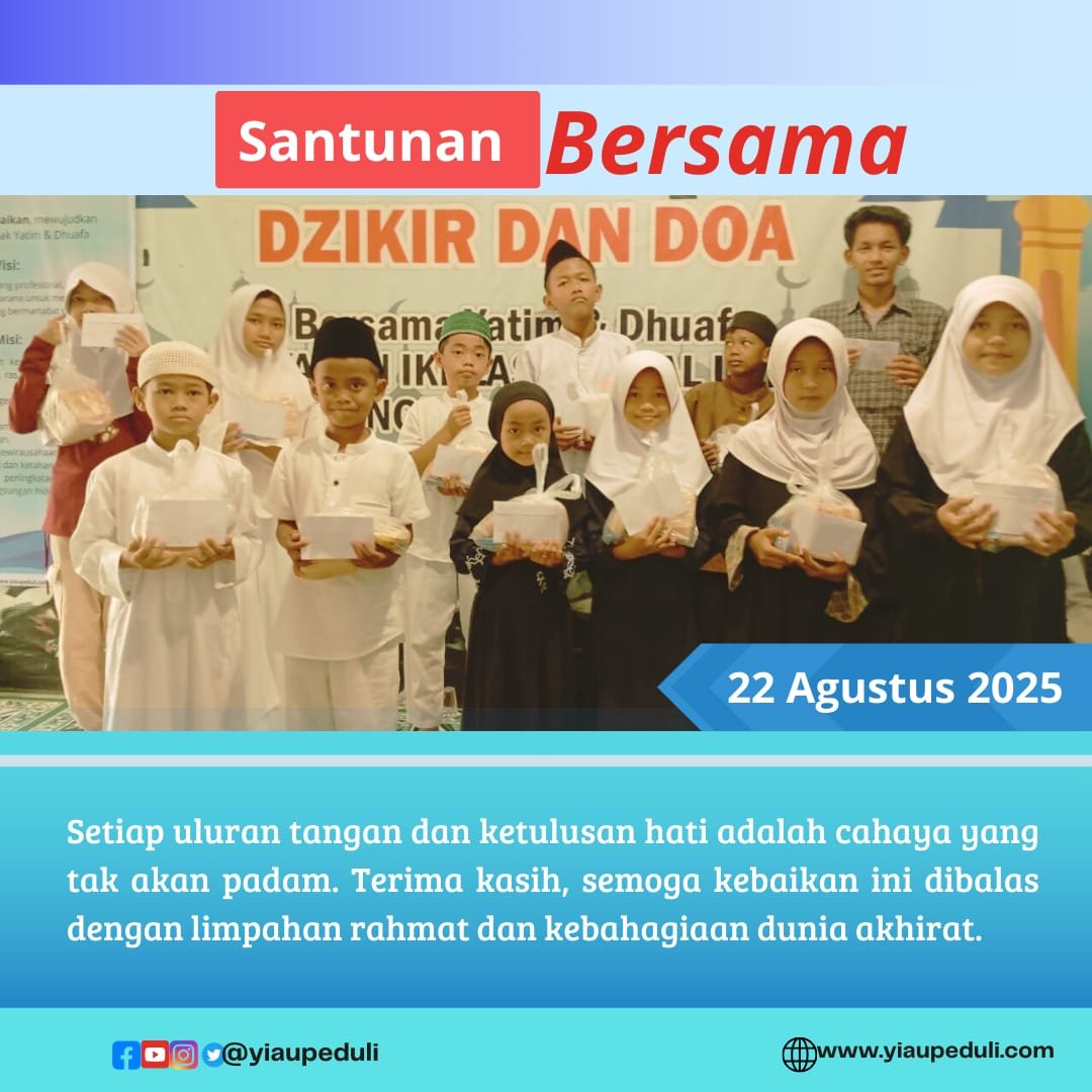 Assalammualaikum warahmatullahi wabarakatuh Ayah, Bunda, Kakak, sahabat Yiau….Selamat berakhir pekan bersama keluarga tercinta… Alhamdulillah…rangkaian kegiatan Do’a Bersama dan Santunan Lebaran Yatim, Jum’at, 8 Agustus 2025 [Selengkapnya…]