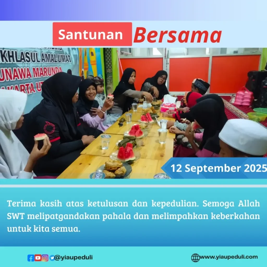 Jazakumullah Khairan katsiran atas Partisipasi, kasih sayang dan Sedekah yang telah diberikan, sehingga Giat Rutin Doa Bersama dan Santunan Pekannan terlaksana dengan penuh keberkahan