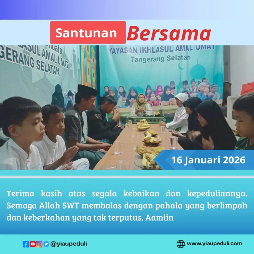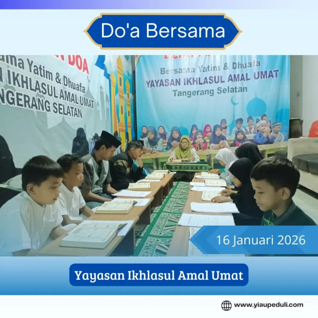 Kegiatan rutin Doa bersama Adik2 Yatim, Jum’at 16 Januari 2026 di Yayasan Ikhlasul Amal Umat telah terlaksana.