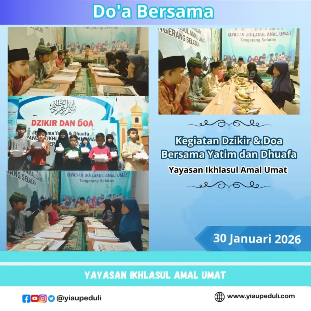 Jazakumullah khairan katsiran atas Support, Kasih Sayang dan Sedekah yang telah diberikan, sehingga Giat Rutin, Doa Bersama dan Pemberian Uang Saku Pekannan di Yayasan Ikhlasul Amal Umat terlaksana dengan baik